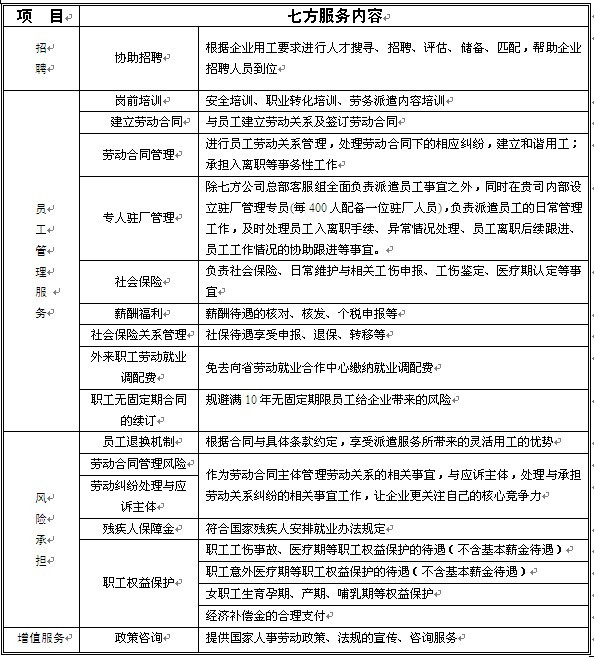 劳务派遣服务内容